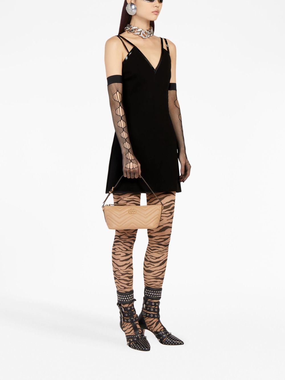 Part of Gucci’s famous Marmont line, this shoulder bag is decorated with an all-over chevron matelassé effect – a collection signature. It’s decorated with a tonal GG logo plaque.