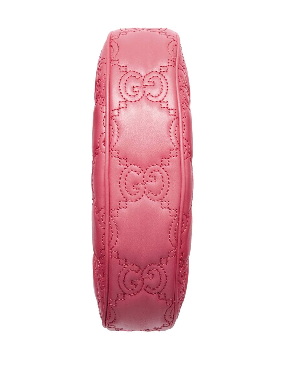 A showcase of Gucci signatures, this compact bag boasts Double G hardware and Interlocking G matelassé quilting. It’s crafted in Italy from pink leather and comes with a detachable shoulder strap and chain-link top handle.