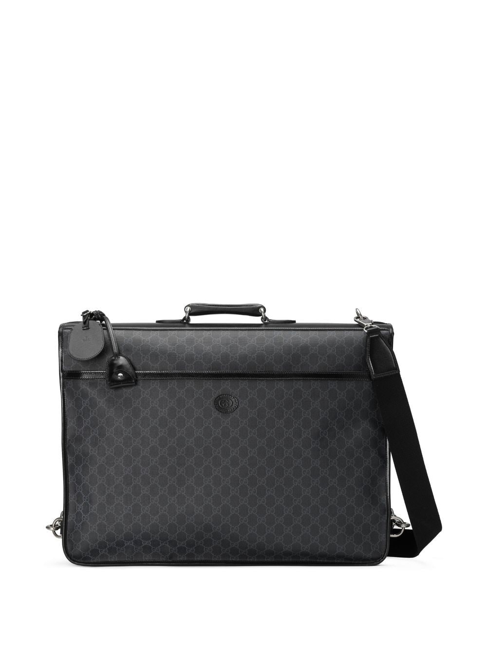 Reflecting the Italian fashion House’s historic origins, the signature GG Supreme canvas is presented on this garment bag. Imagined in a tonal black colourway for the Love Parade collection, the iconic Interlocking G motif is punctuated at the centre in a leather iteration for a branding-focused finish.