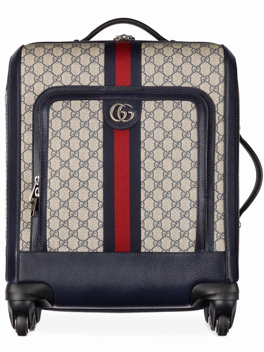 Debuting in the ’60s, the GG Supreme canvas defines the construction of this carry-on from Gucci’s SS22 collection named ‘Love Parade’. A timeless mix of blue and beige reinvents the canvas, giving a modern update to the iconic design yet continuing with the house narrative.