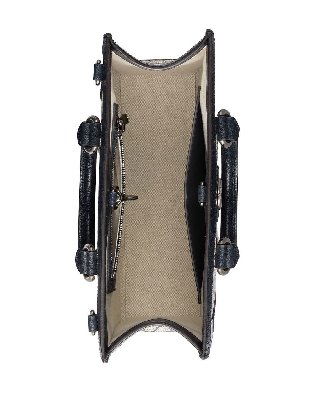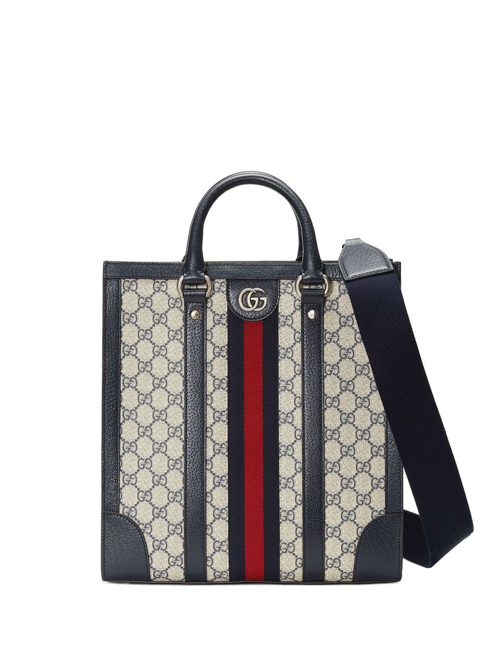 • Crafted from the brand’s iconic GG Supreme canvas which showcases the everlasting monogram created by Guccio Gucci, this Ophidia tote bag is completed with the red and navy blue Web stripe and the signature Double G logo to the front.