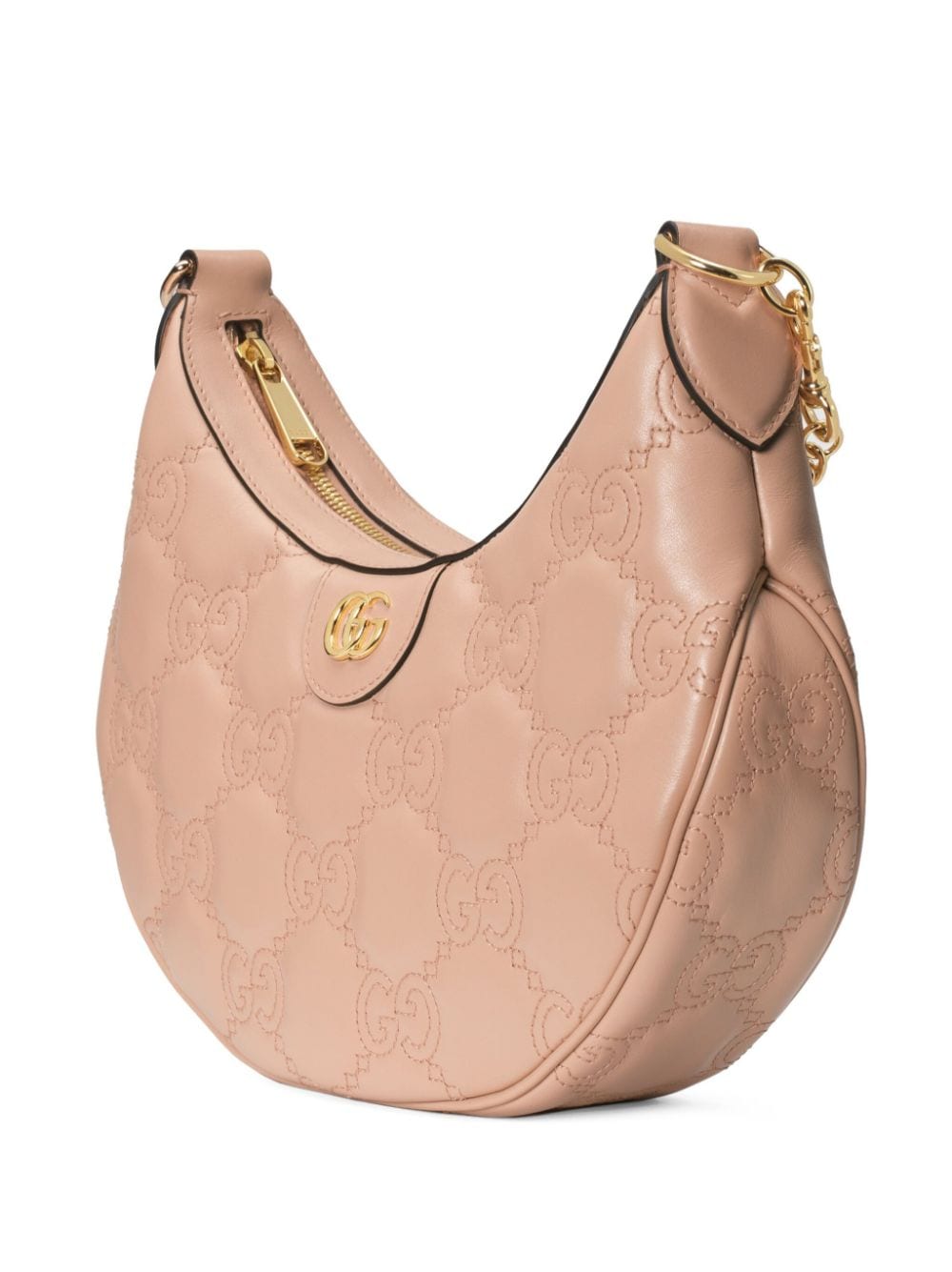 Gucci’s signature matelassé leather is reimagined in a blush-beige hue on this shoulder bag for AW23. The compact design is fitted with a detachable chain and canvas strap and is detailed with the Double G logo in gold-tone hardware.