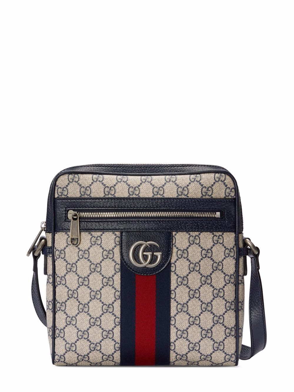 A renowned silhouette of the house, the Ophidia draws inspiration from Greek mythology and is adorned with some of Gucci’s most iconic motifs, like its GG Supreme canvas throughout and a GG logo plaque at the front. Trimmed with soft leather, this small bag is finished with a navy and red iteration of the brand’s Web stripe motif and a practical zipped pocket.