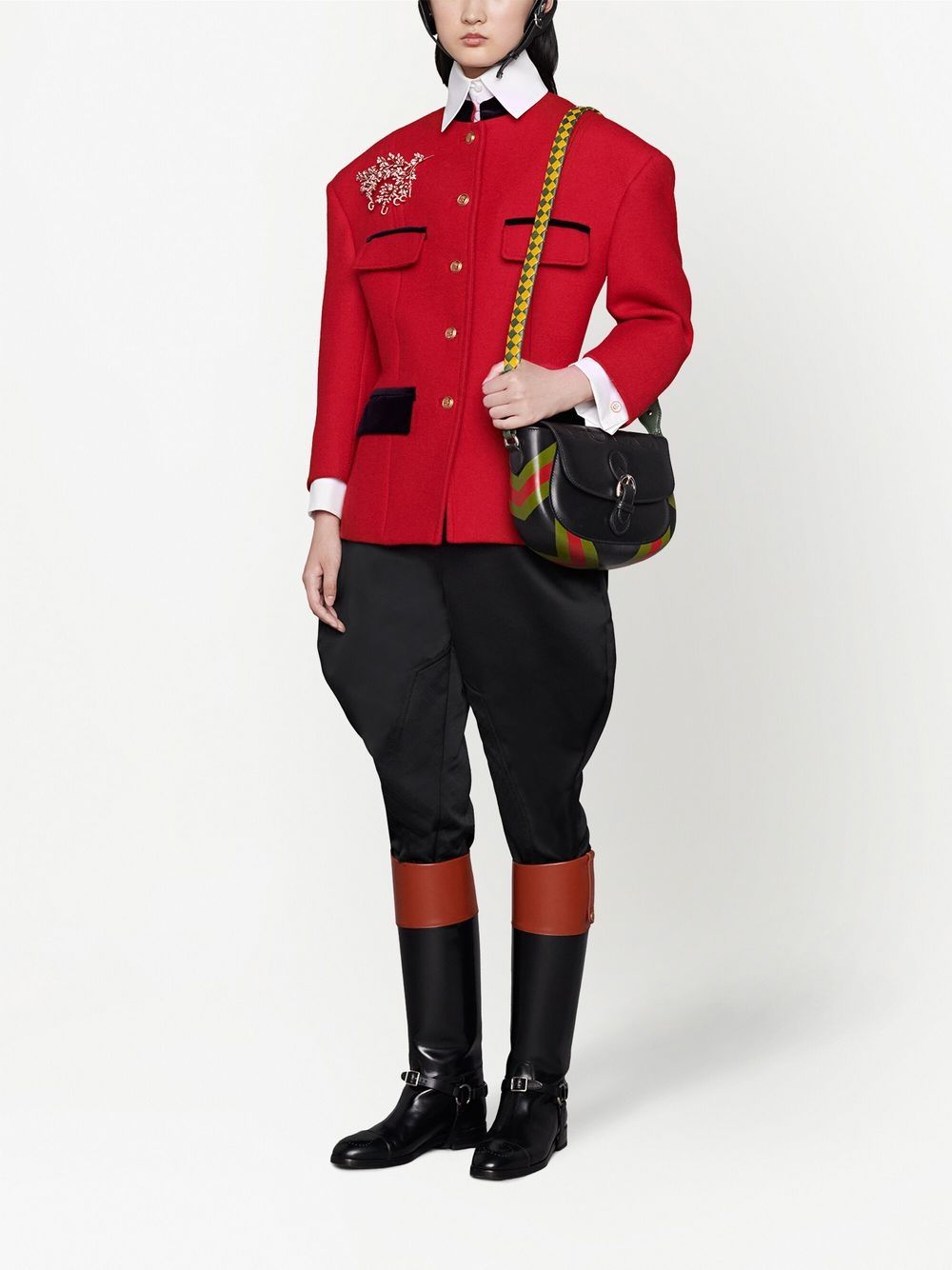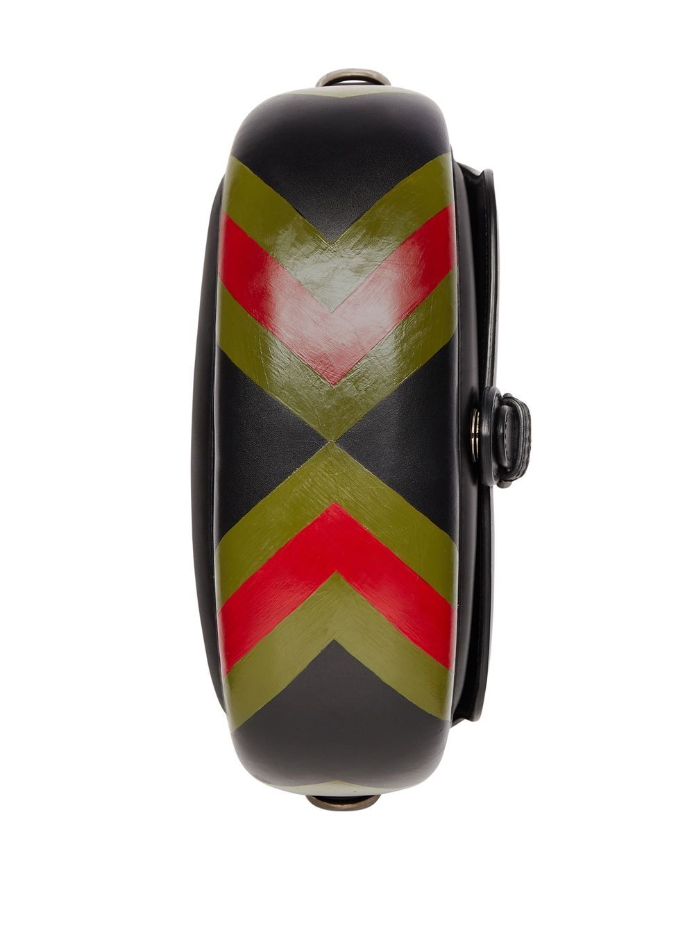 black/green/red leather blend diamond pattern colour-block design single shoulder strap foldover top buckle fastening main compartment
