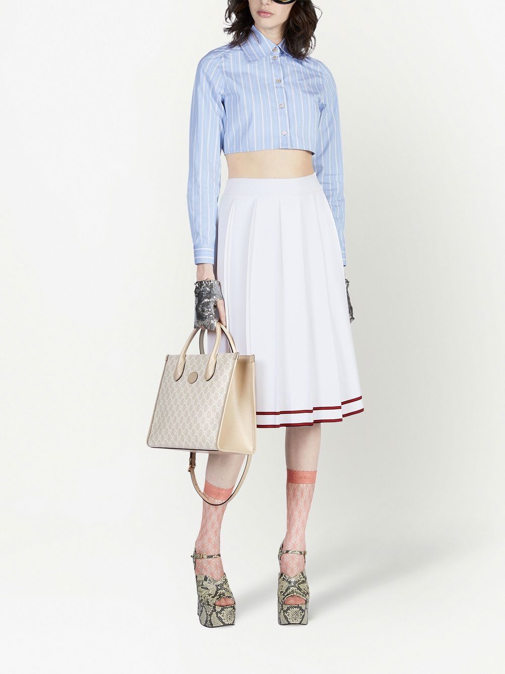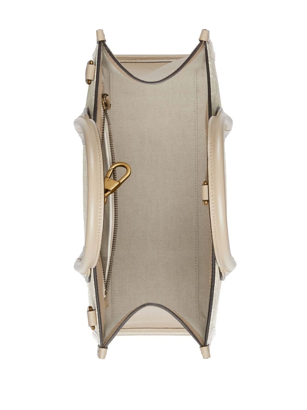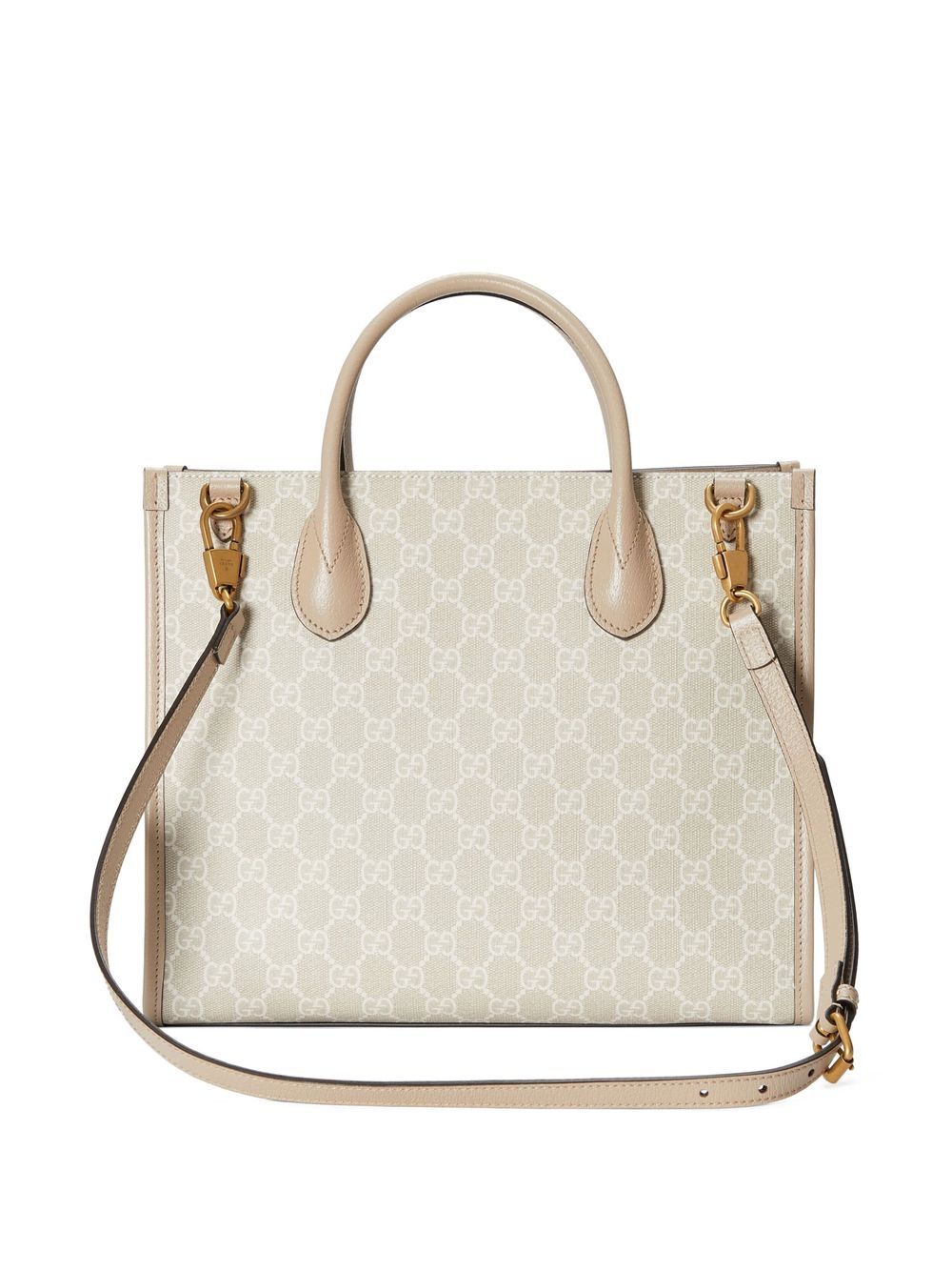 Oatmeal/cream/white leather/canvas small tote bag with Interlocking G from GUCCI featuring embossed logo to the front, clasp fastening, two rounded top handles, main compartment, internal zip-fastening pocket and GG Supreme canvas. This piece comes complete with a protective dust bag..