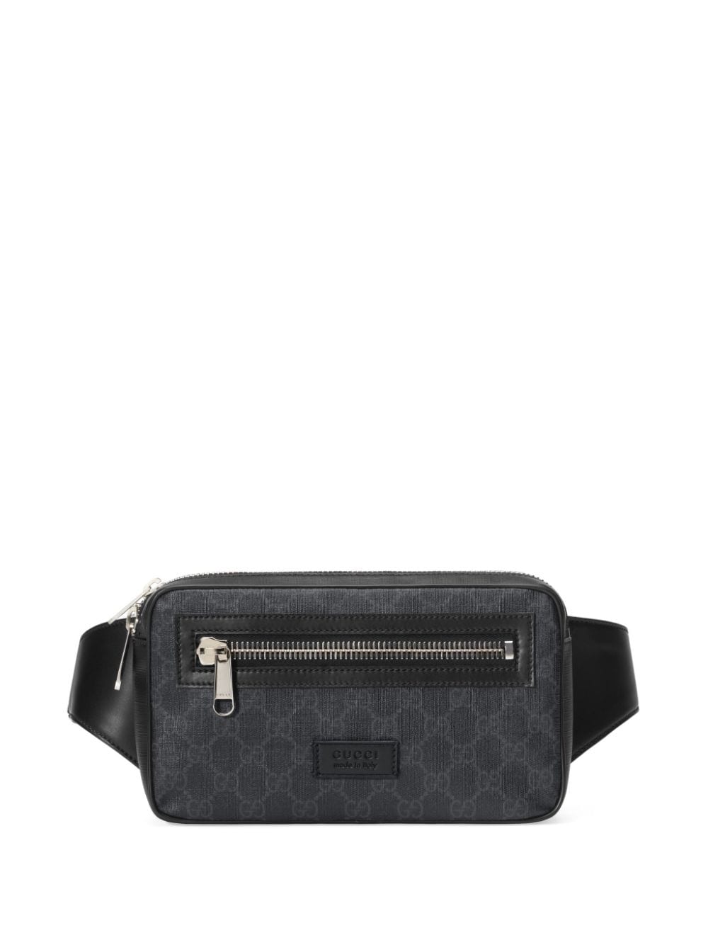 A small pouch made from incredibly malleable soft GG Supreme. The adjustable waist strap features the House Web stripe in blue and red. Black/grey soft GG Supreme, crafted from a coated microfiber fabric, with black leather trim. Blue and red Web strap. Palladium toned hardware. Gucci trademark leather tag detail. Black mesh back. Front zipper pocket. Interior zipper and open pocket. Adjustable belt with 41cm drop and plastic buckle closure. Zipper closure. W24cm x H14cm x D5.5cm. Black cotton linen lining. Made in Italy.