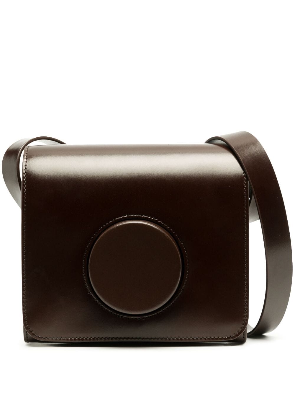 A classic and irreverent design, this Lemaire bag is crafted to resemble a vintage camera case, complete with a hand-moulded lens-shaped front flap fastening. It’s made from smooth leather that’s vegetable tanned a dark-brown shade and lined in cotton canvas.