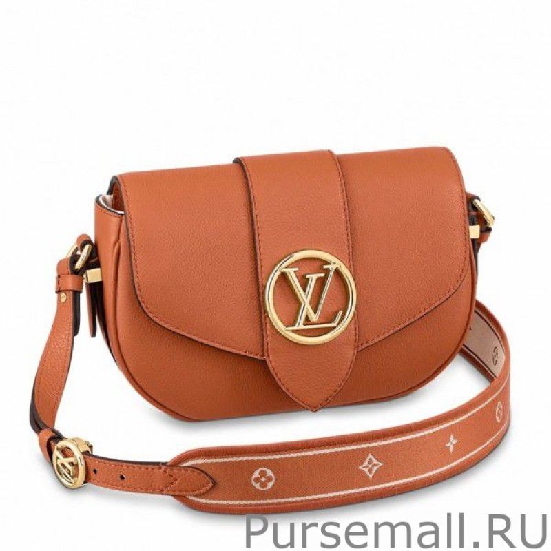 The LV Pont 9 Soft MM is a rounded handbag made from grained calfskin with smooth cowhide lining in a contrasting color and a wide twocolor strap decorated with Monogram Flowers. The two sides of the strap are woven separately and then stitched together by hand. The new LV Circle signs this bag.