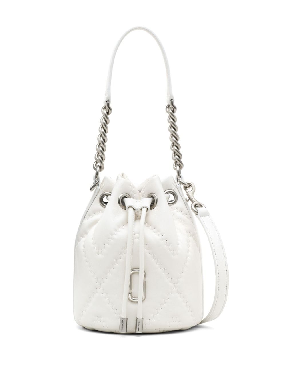 A signature style, The J Marc bucket bag by Marc Jacobs is back for the new season in white colour. Constructed with quilted leather, this model features a monochromatic design elevated by the famous J Marc logo at the front.