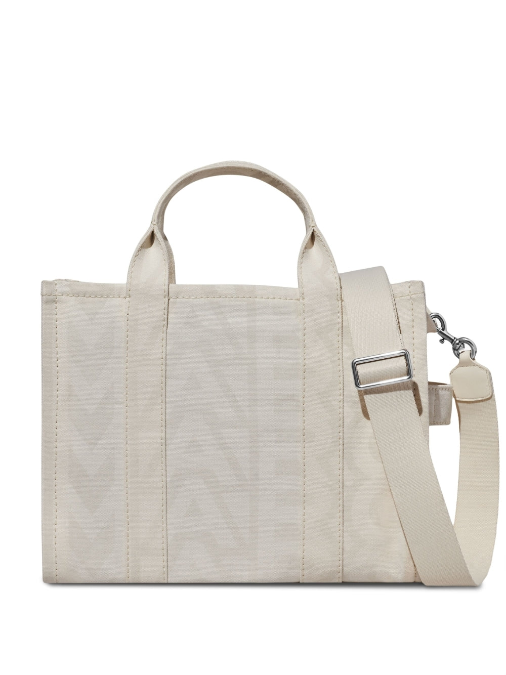 First debuted in 2019, The Tote Bag from Marc Jacobs has been updated in various colours and sizes. Rendered in a ‘Optic White’ and ‘Eggshell’ hue, this minimalist canvas iteration from the SS23 collection is detailed with a jacquard monogram and logo patch.