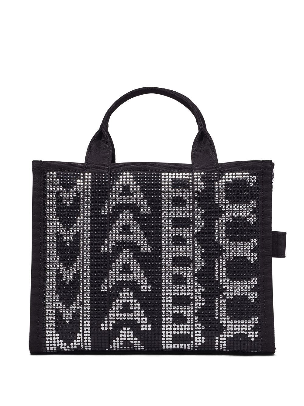 This iteration of Marc Jacobs’ signature tote range is presented in cotton with all-over metallic stud embellishment. The bag boasts bold logo branding to the front and is set against a square profile.