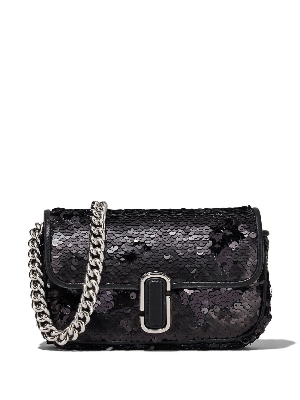 • A bold take on the J Marc mini bag, this fully embellished number embraces the house’s love of sequins and shine. Designed for versatile wear, it can be styled with a crossbody strap, chain-link shoulder strap or carries strapless as a clutch.