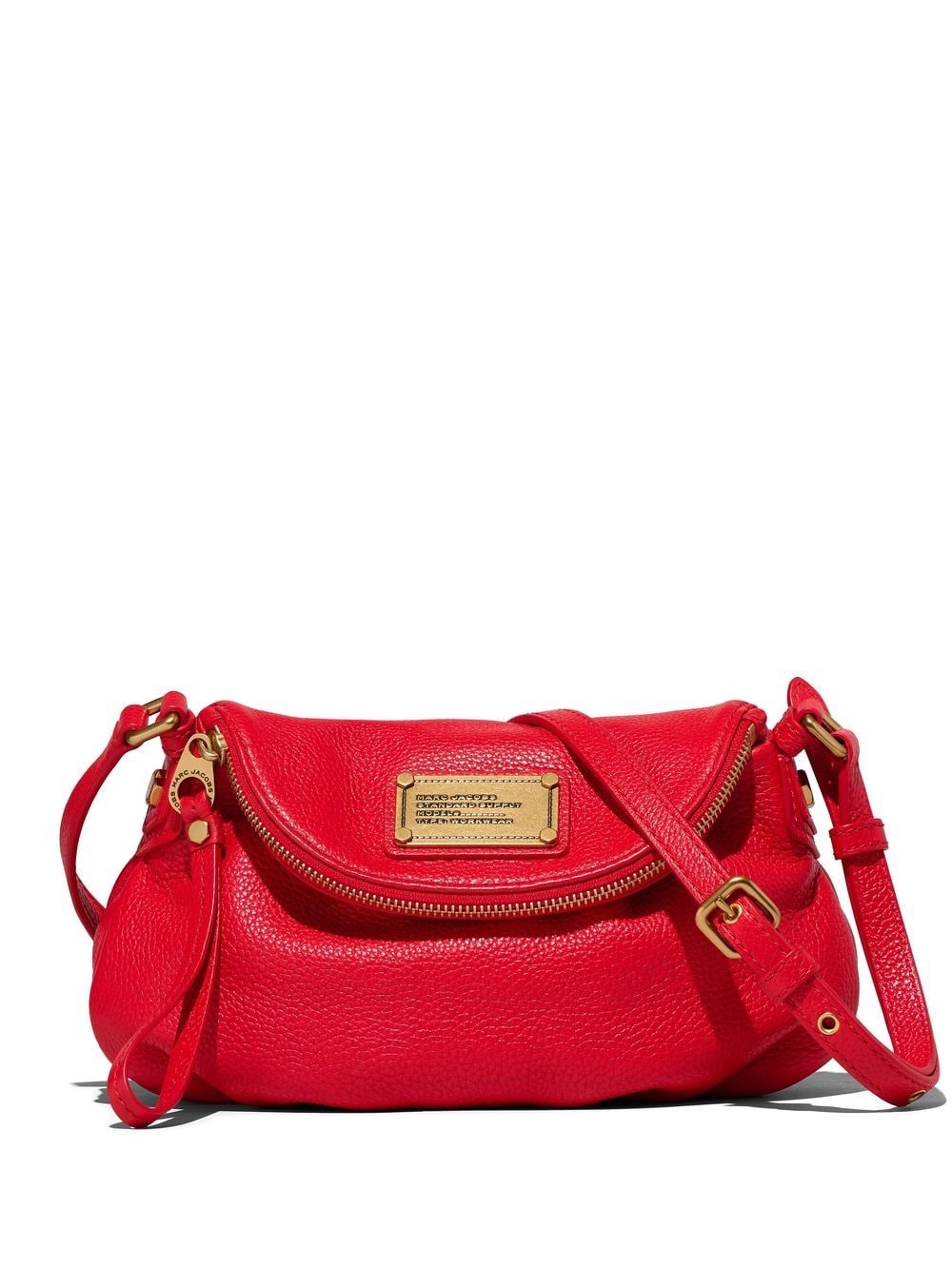 Re-edition Natasha bag from Marc Jacobs featuring red, calf leather, foldover top with magnetic fastening, top zip fastening, main compartment, wrist strap, adjustable detachable shoulder strap and gold-tone logo plaque.