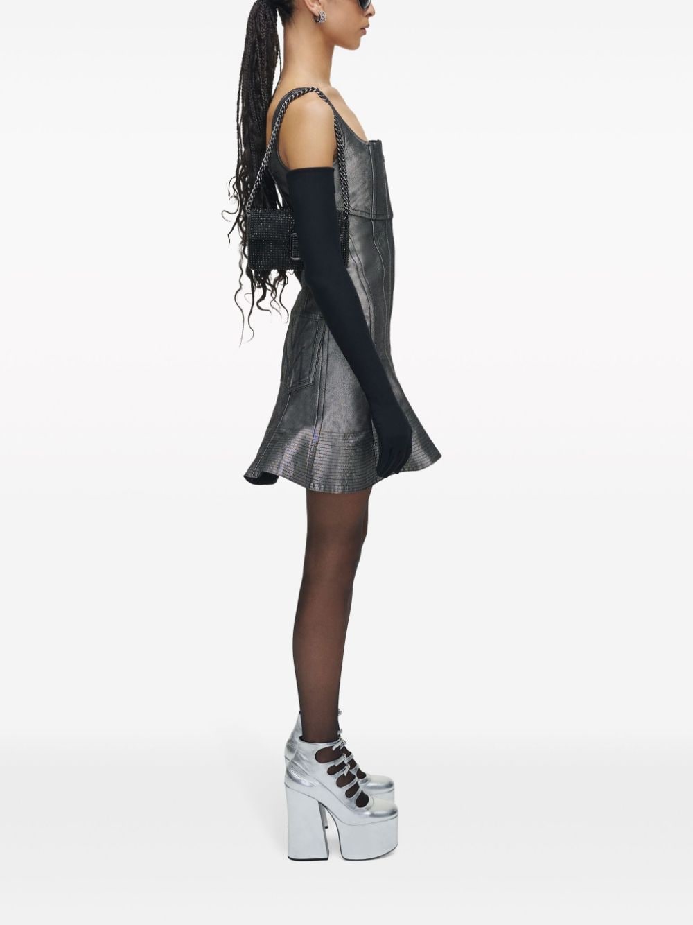 Saturated with crystals, this Marc Jacobs shoulder bag is secured with a silver-tone logo plaque.