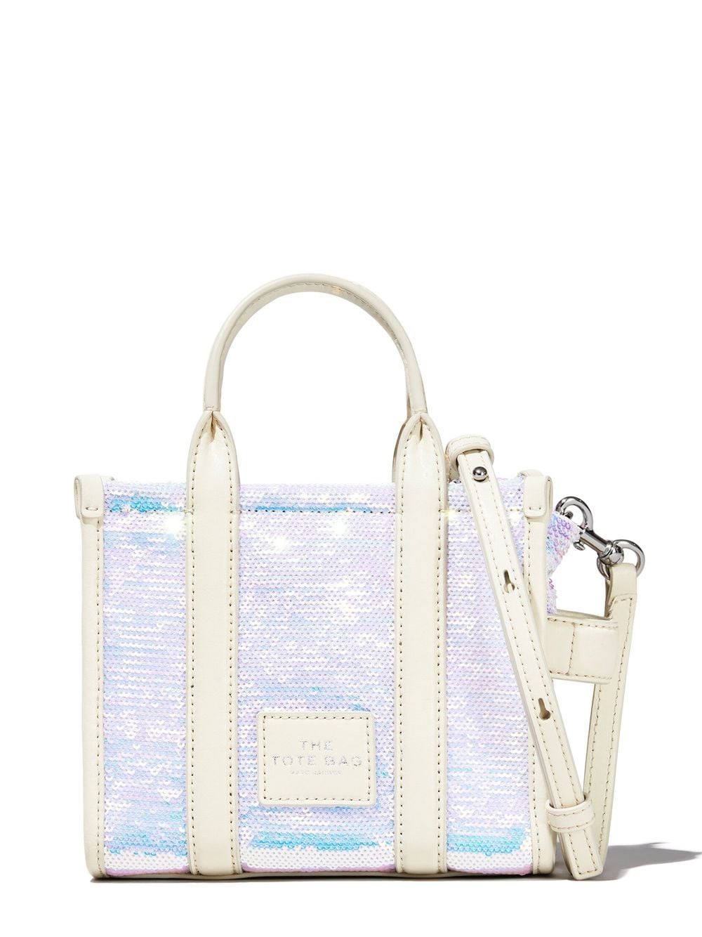 • Embellished with iridescent discs that change colour in the light, the Mini Tote Bag embraces Marc Jacobs’ love for all-over layered sequin designs. Featuring a logo patch to the front and a detachable shoulder strap, this piece adds glow for a convenient use.