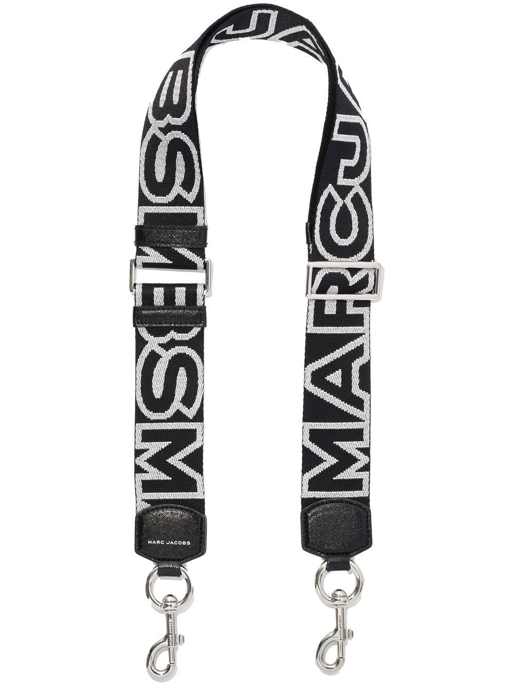 logo-detail adjustable shoulder strap from Marc Jacobs featuring jet black, silver-tone hardware, logo-tape detailing, adjustable shoulder strap and clip fastening.