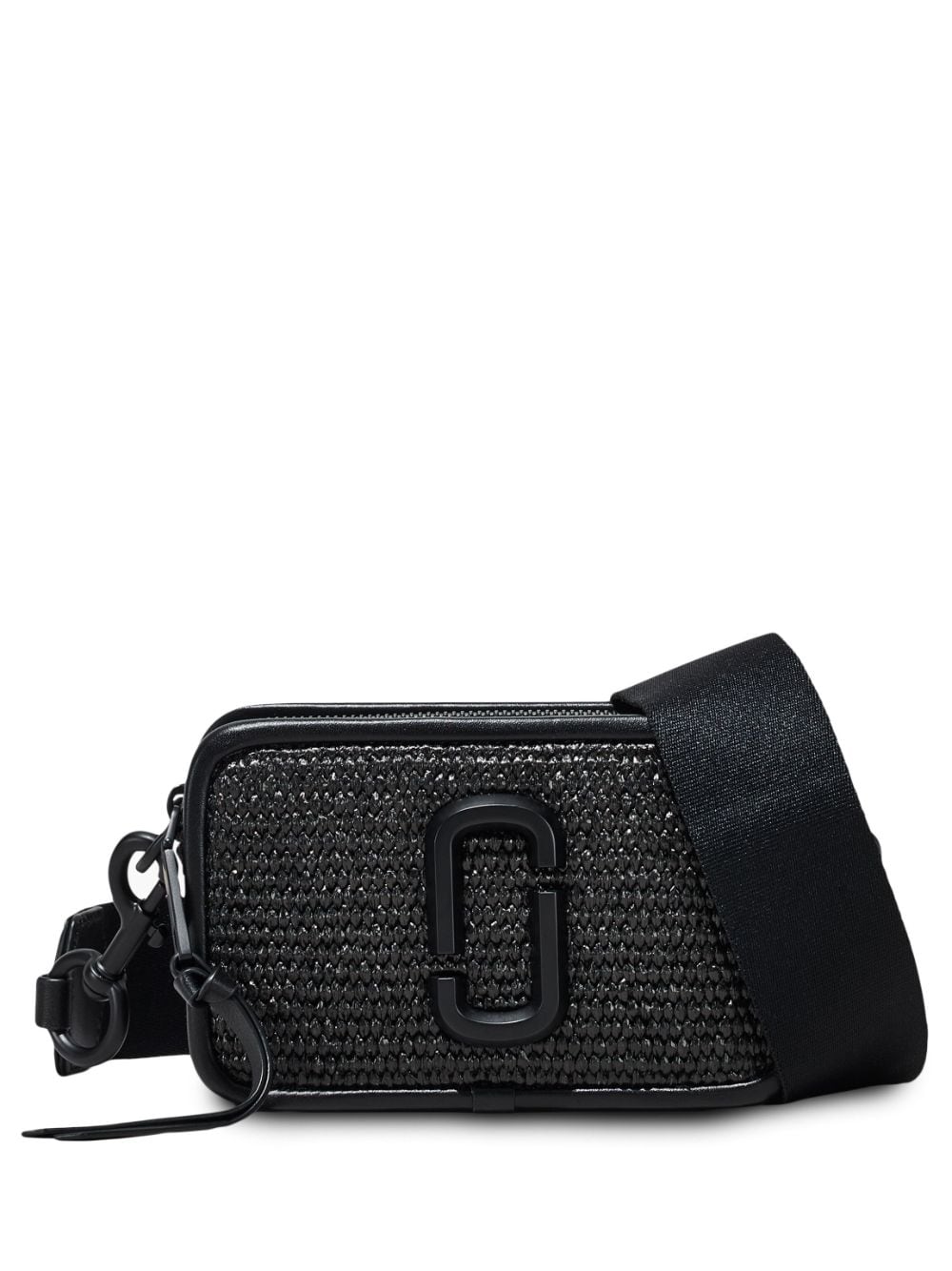 Presented in a black woven raffia design, this crossbody bag by Marc Jacobs is decorated with a tonal logo plaque at the front. Featuring a structured silhouette, this piece benefits from two zip-fastening compartments.