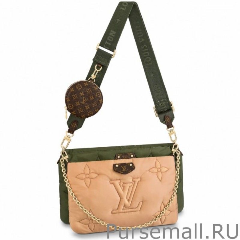 The hybrid Maxi Multi Pochette Accessoires handbag comes in ecoresponsible Econyl regenerated nylon. The exterior is embroidered with a Monogram pattern, giving it a comfy padded aspect, and lined with MiniMonogram printed Econyl. This crossbody bag boasts multiple pockets and compartments and combines a Pochette Accessoires, a Mini Pochette Accessoires and a Round Coin Purse.
