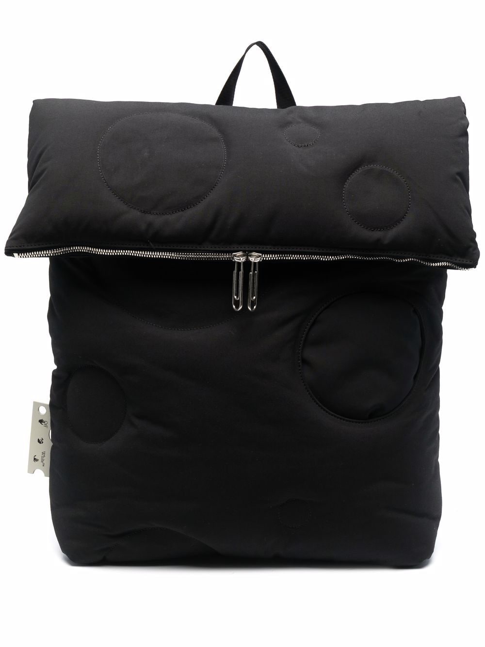 Off-White’s backpack riffs on the brand’s Meteor bag that launched in 2019. This black padded iteration features tonal stitching depicting the curved meteors in space.