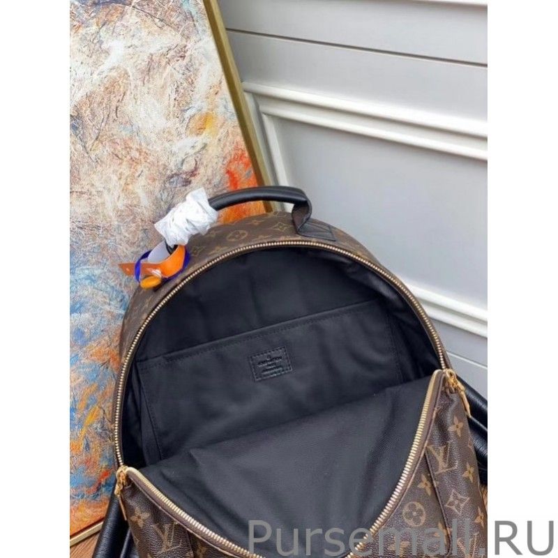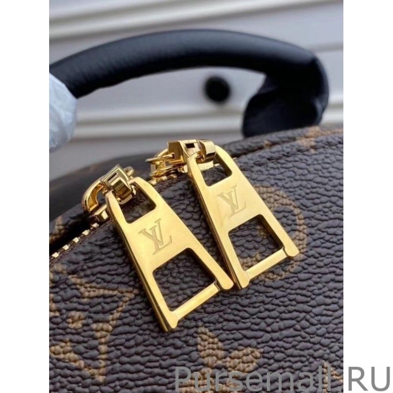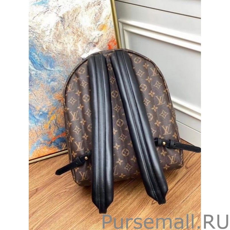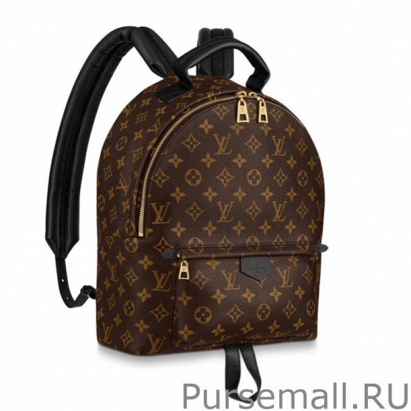 Sized model is fashioned from iconic Monogram canvas with soft leather trim and goldtone hardware. The quilted straps are foambacked for a comfortable carry.
