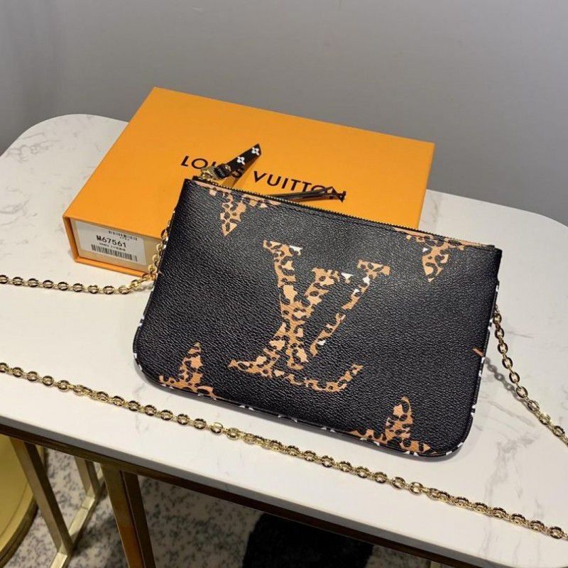 the Pochette Double Zip comes in Monogram and Monogram Giant canvas with a graphic animal print. This pouch offers two zipped pockets for valuables and a middle space for easy access to essentials. It can be carried on the shoulder, across the body or in the hand