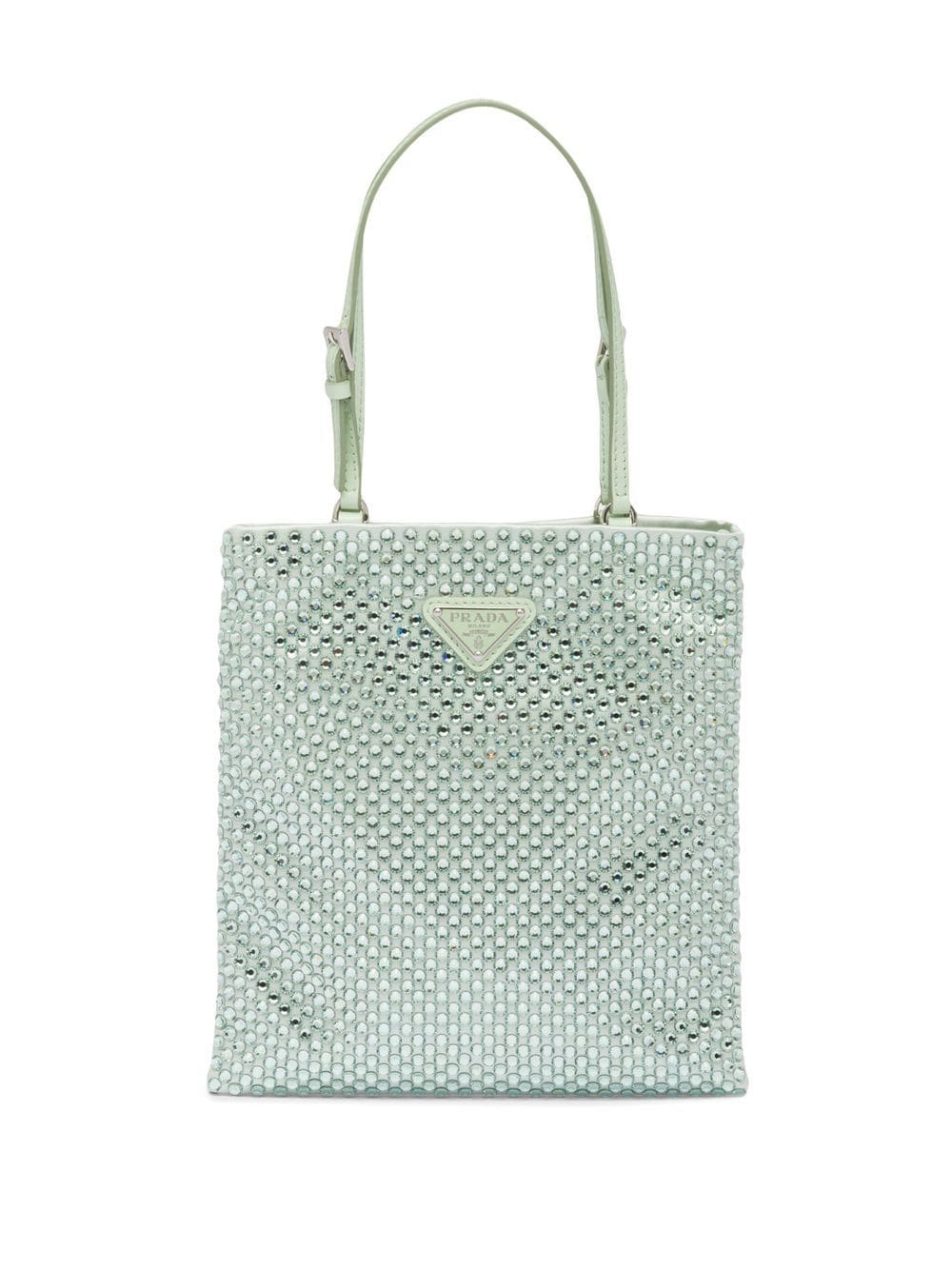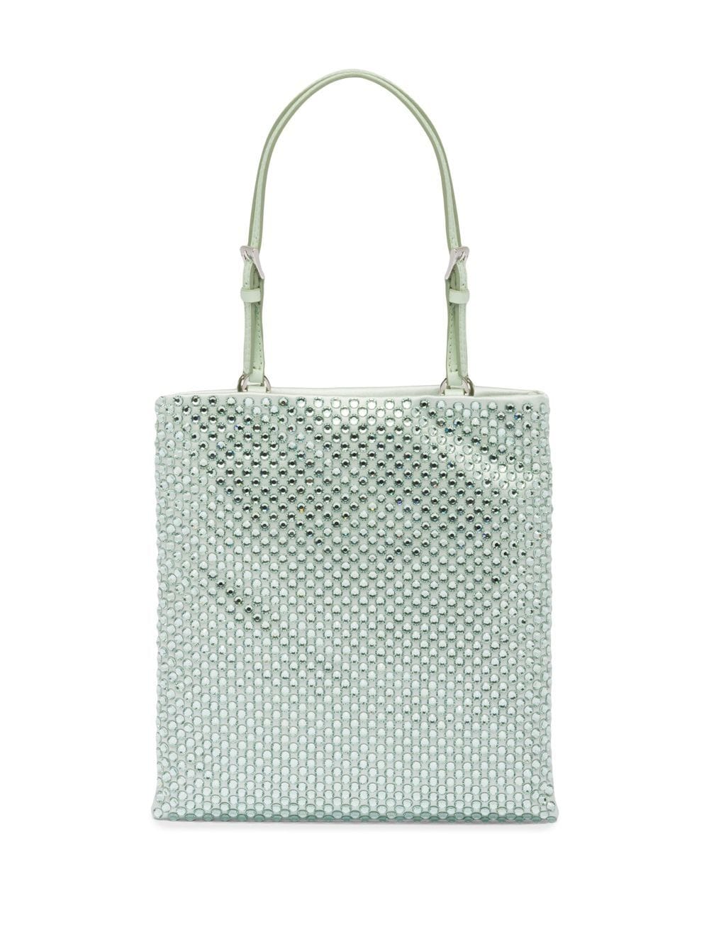 Prada evokes a sense of opulence with this satin handbag. The lustrous fabrication is embellished with shimmering crystals all over, creating an ornate aesthetic.
