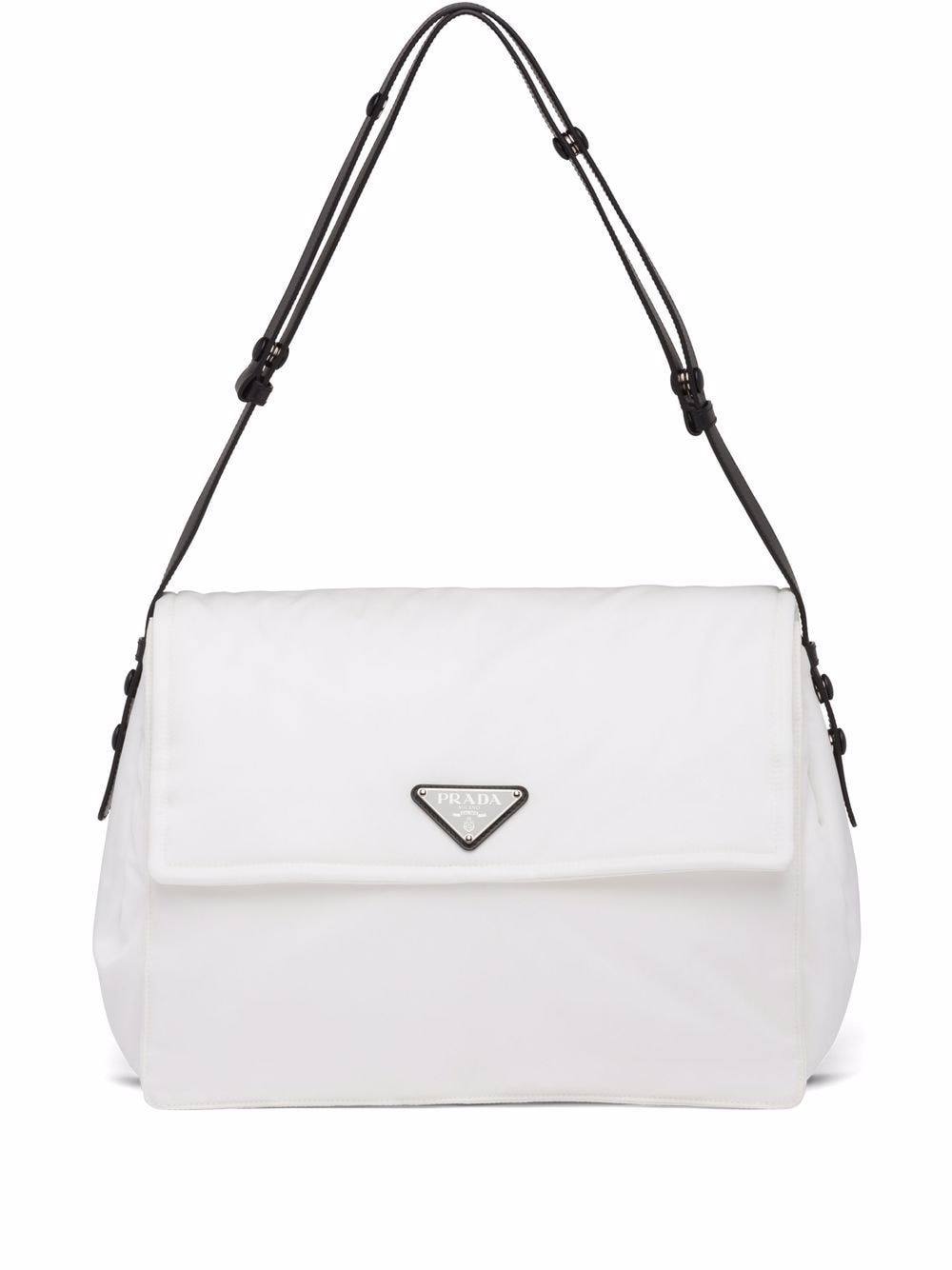 Prada revisits its Galleria tote bag in a micro size for SS22. Defined by the signature triangle logo plaque to the front, this compact iteration boasts gold-tone hardware for a high-octane finish.
