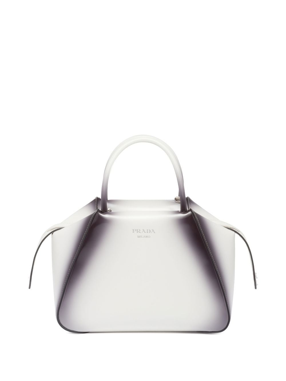 Part of Prada’s AW22 collection, this brushed leather tote bag stands out for its sleek silhouette enhanced with a finish applied by hand with an airbrush effect that underlines its geometric lines and three-dimensionality. An enamelled metal triangle logo on the side finishes the look.