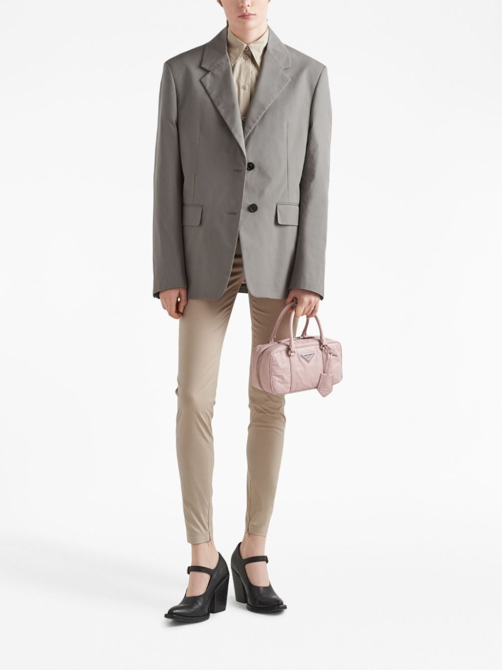 An ode to noughties style, this Prada tote bag is crafted to a compact, rectangular shape with two top handles and a detachable shoulder strap with a zip pouch. The brand’s triangular logo sits front and centre.