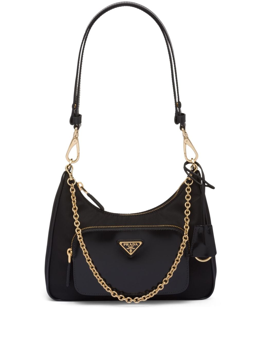 Made from Prada’s signature Re-Nylon fabric, this shoulder bag presents a sleek silhouette embellished with the iconic triangle logo on the front. Complete with a front zip pocket, it is equipped with two detachable handles for personalised wear.