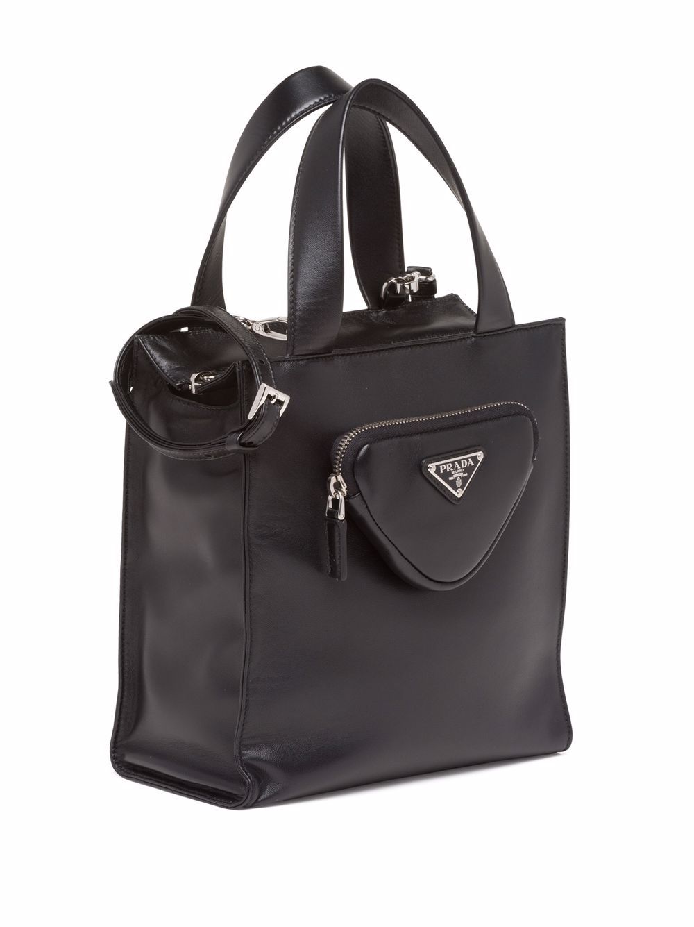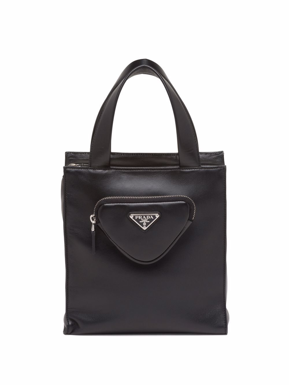 Prada’s expert Italian craftsmanship is evident in this compact tote bag from the brand’s AW21 collection. Produced in supple black nappa leather, the practical design is detailed with a triangular logo pouch to the front.