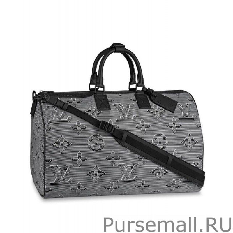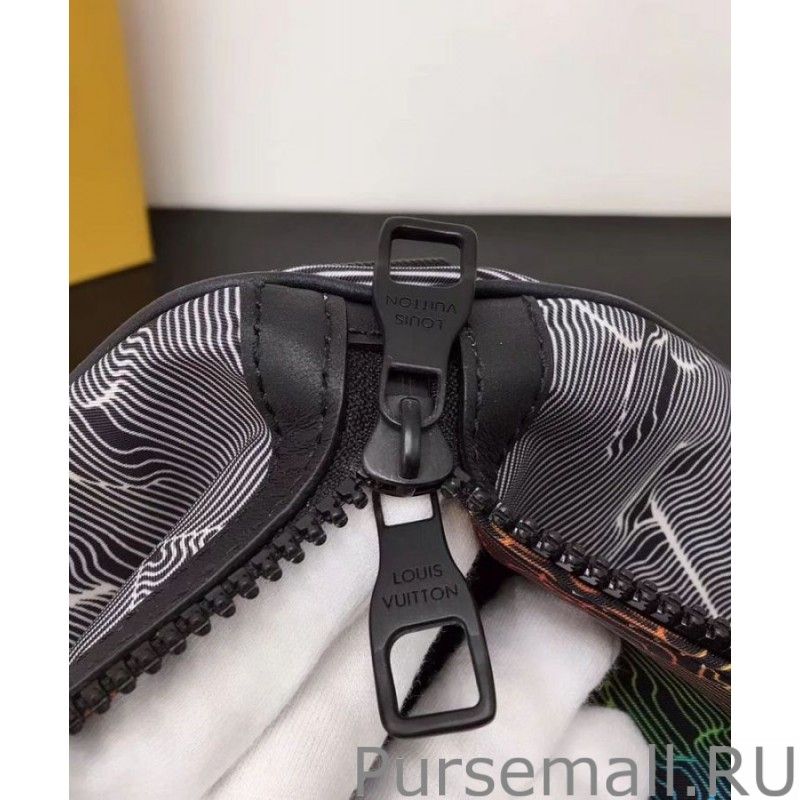 Part of the 2054 Collection by Virgil Abloh, the reversible Keepall Bandouliere 50 allies utility with luxury. It is fashioned from embossed Monogram textile, rainbow multicoloured on one side and greyblack on the other. The leather top handles and shoulder strap bring convenience. It is signed with Abloh new rainbowcolour metallic LV Initials
