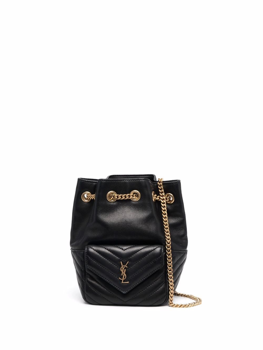 black leather quilted signature YSL logo plaque adjustable leather and chain-link shoulder strap main compartment