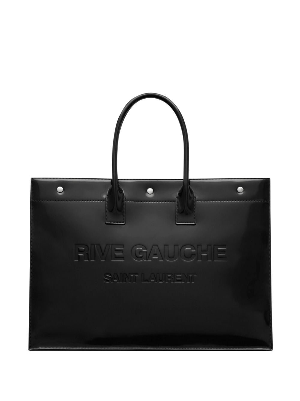 Saint Laurent’s Rive Gauche bag is known for its roomy interior and minimalist design. This iteration comes in matte black leather with tonal branding debossed to the front.