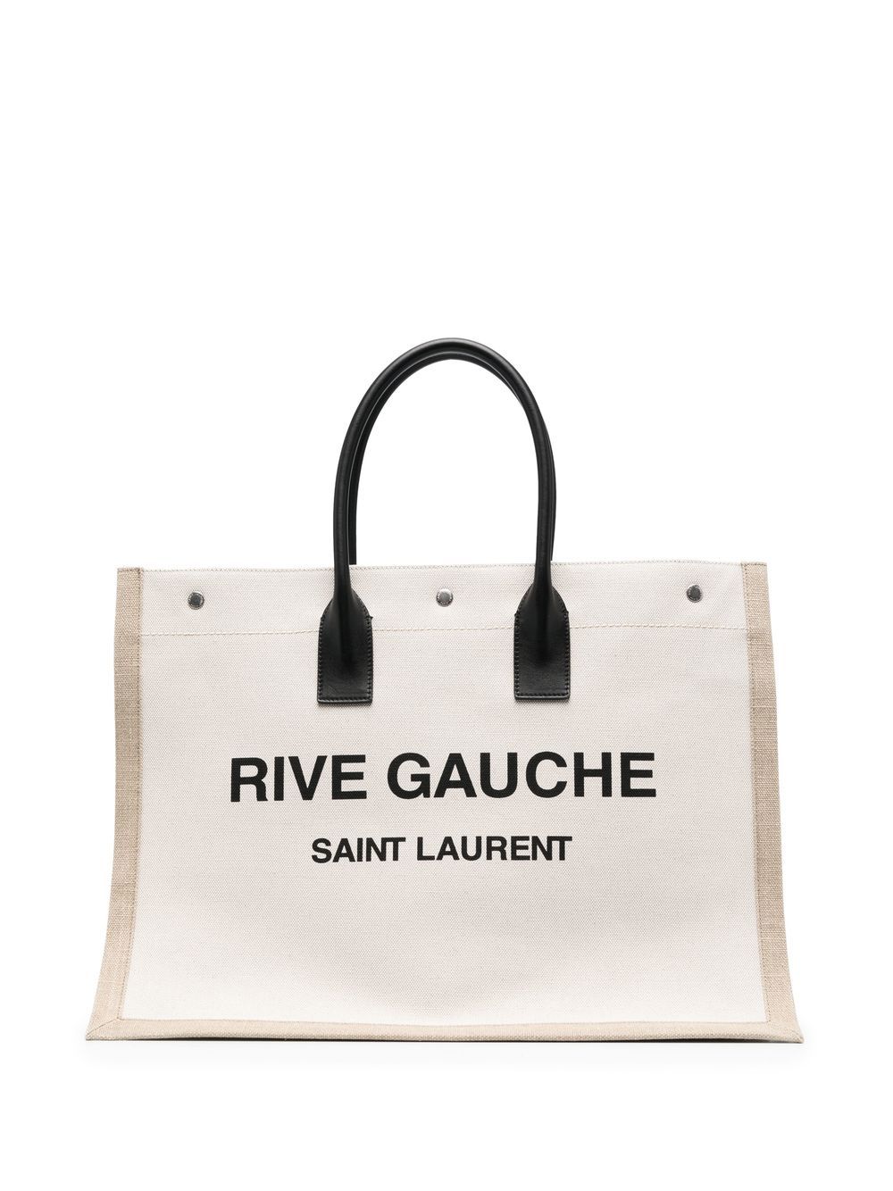 Crafted from linen and suspended by reinforced leather top handles, this tote bag from Saint Laurent is detailed with the brand’s moniker and ‘Rive Gauche’ lettering – it references the label’s Parisian store, and sanctum of inspiration, which opened in 1966.
