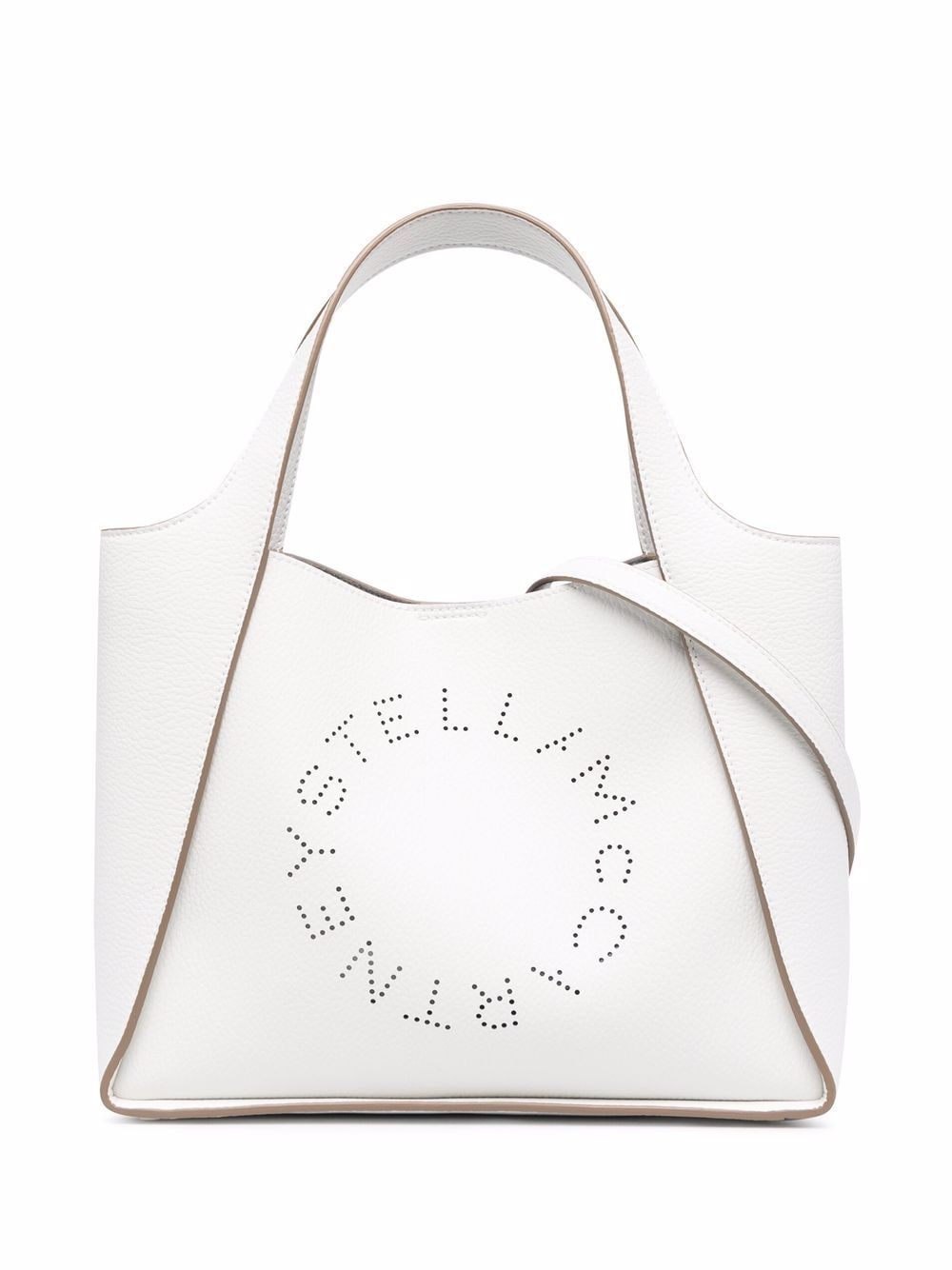 As always, Stella McCartney fashions contemporary offerings for the modern woman without eschewing the ethical ambitions that the brand was built on. A vision of smooth faux leather this Stella Logo tote bag features top handles, a detachable shoulder strap, a removable pouch and decorative perforations.