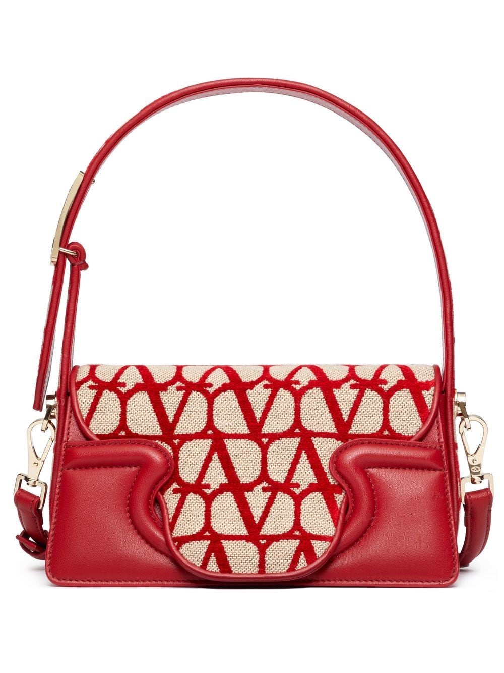 Valentino Garavani’s Le Petit Deuxième shoulder bag references ‘90s styles. Rendered in signature Toile Iconographe, it features an elongated silhouette and curved flap opening, further contributing to the retro feel.