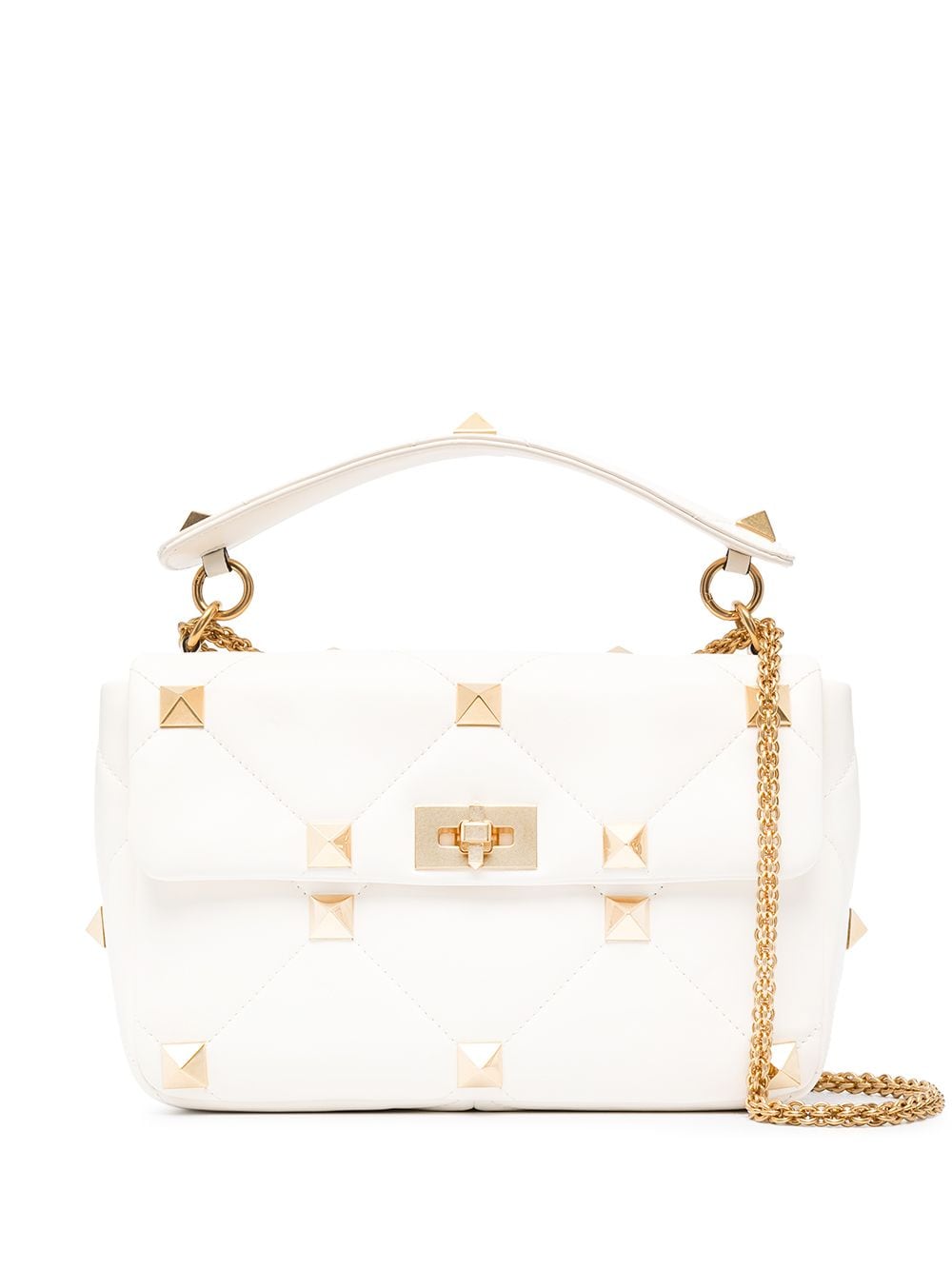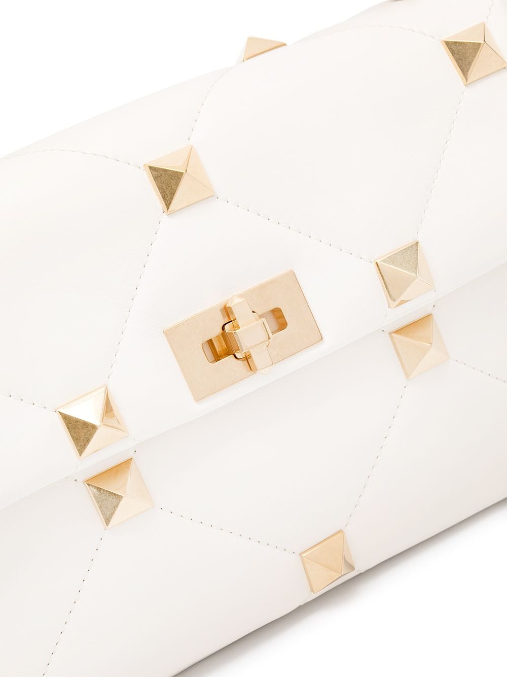 The pinnacle of Italian designs. Crafted from leather, this Roman Stud chain bag from Valentino Garavani features gold-tone Rockstud embellishments and a quilted finish that give this exquisite piece a glamorous look. Impossible not to notice.