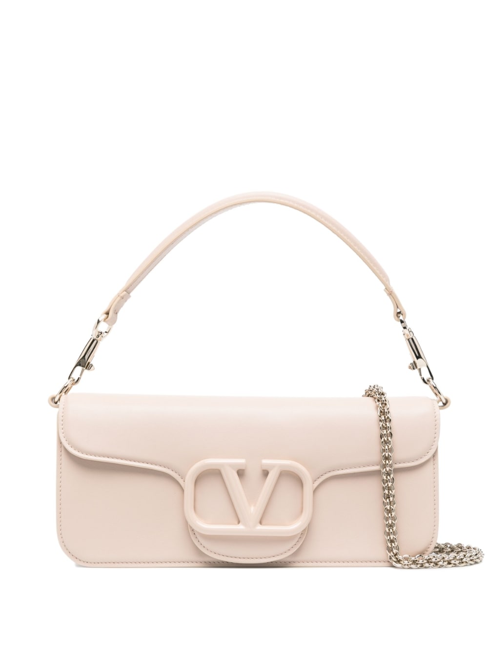 Rendered in light pink calf leather, this Valentino Garavani shoulder bag is embellished with the maison’s iconic VLogo Signature in tonal hardware. A detachable top handle and chain shoulder strap offer versatile wearability.