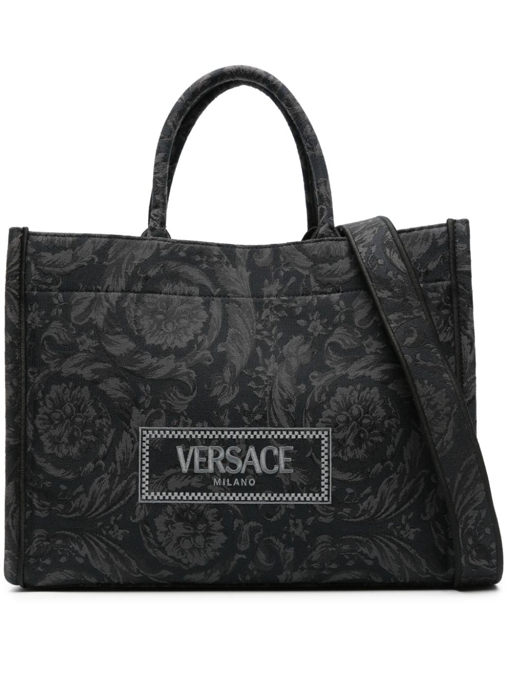 Versace puts its spin on the classic shopper tote with this bag. The black canvas base plays host to a jacquard Barocco pattern and logo embroidery repurposed from the ‘90s archives. It’s complete with two top handles and a detachable shoulder strap.